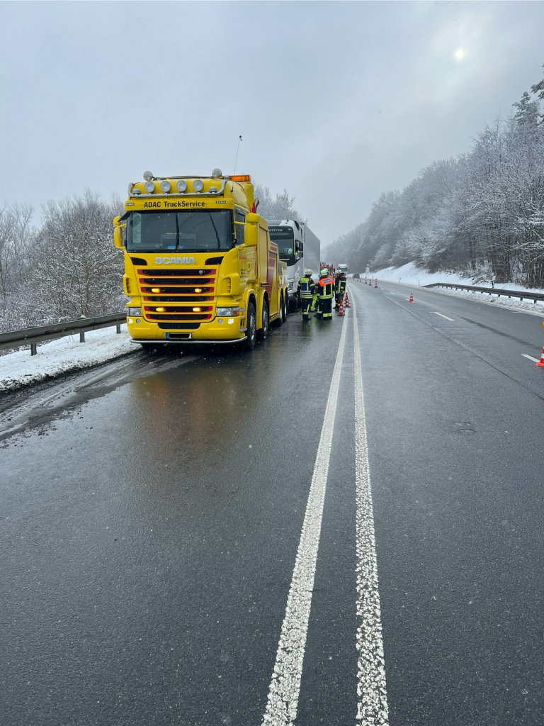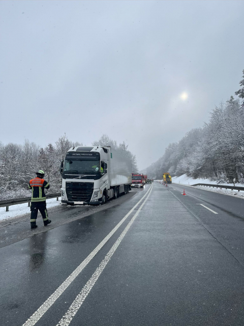 Aufgrund eines Pannen-LKW auf der B505 wurde unser Einsatz erforderlich. Wegen des starken Schneefalls und des dadurch erhöhten Arbeitsaufkommens bei Polizei und Straßenmeisterei wurden wir zur Verkehrsabsicherung alarmiert.