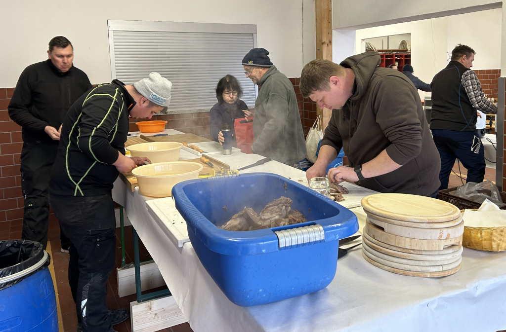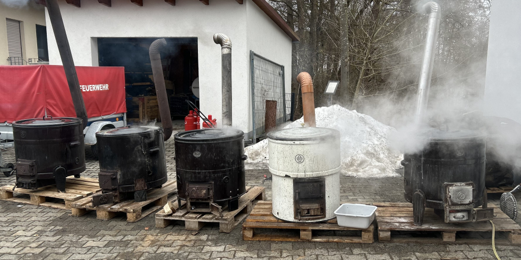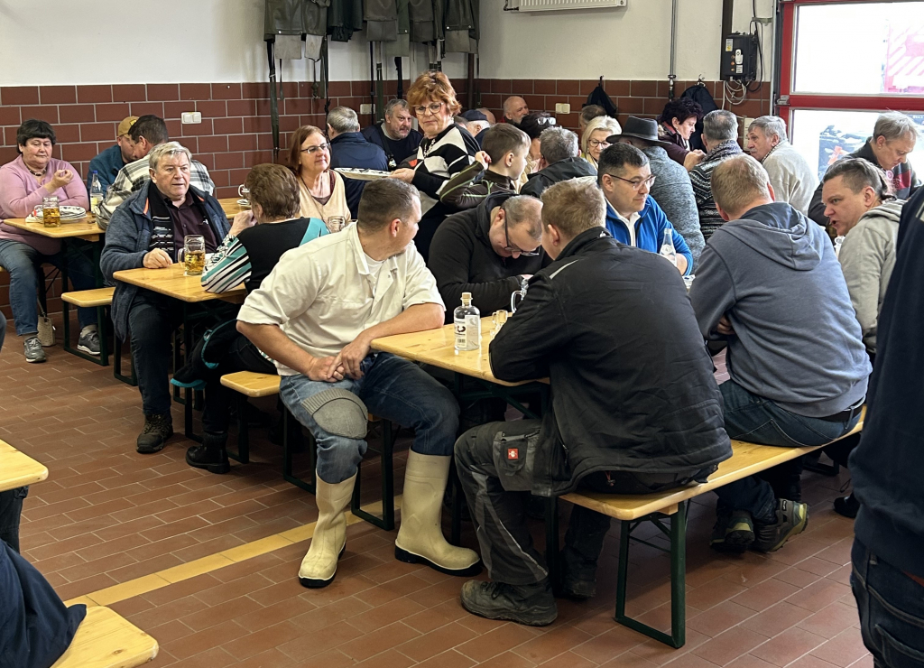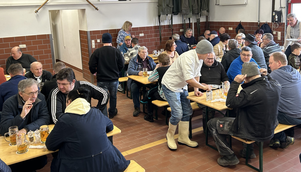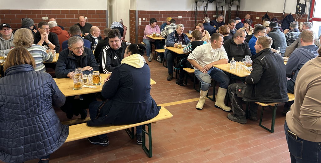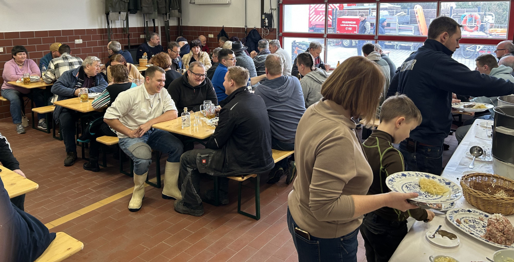 Am vergangenen Faschingssamstag fand unsere öffentliche Schlachtschüssel bei uns im Feuerwehrhaus statt. Bereits um 6:00 Uhr gingen es für die ersten mit Einheizen der 5 Kessel los. Später folgten dann noch die Aufbauarbeiten, und das Kochen der Köpfe, Bäuche und Innereien, so dass es schließlich ab 10 Uhr hieß “Essen fassen” . Unsere Schlachtschüssel erfreute sich großer Beliebtheit, so dass unsere Halle 2 restlos gefüllt war. Kopffleisch, Bauch, Herz, Niere, Zunge mit frischem Sauerkraut und Bauernbrot, sowie frischem Fassbier ließen sich unsere Gäste bis zum frühen Nachmittag schmecken. Dann erfolgte das große Saubermachen und anschließende Ausklingen bei der Feuerwehr.
